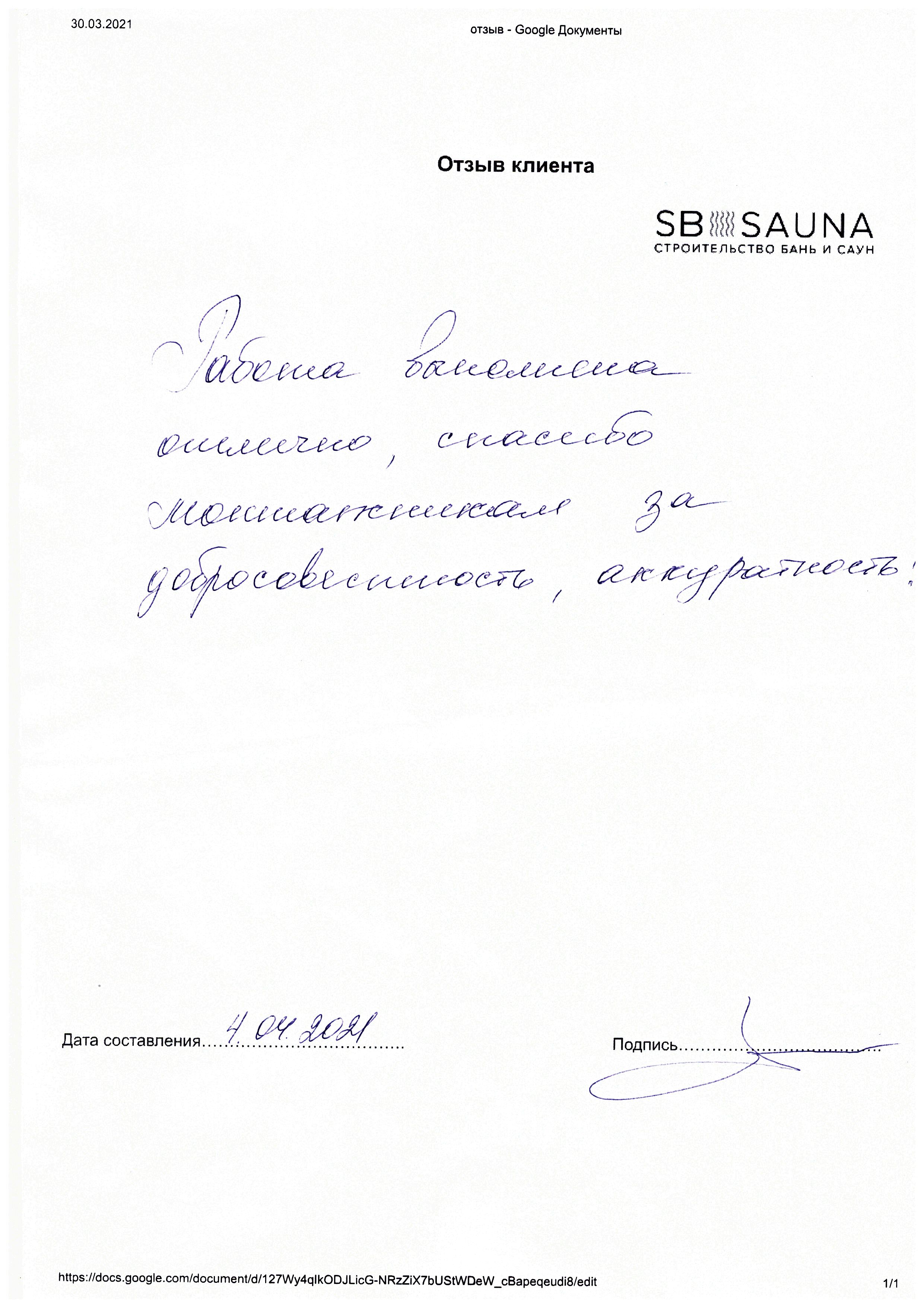 Отзыв наших клиентов