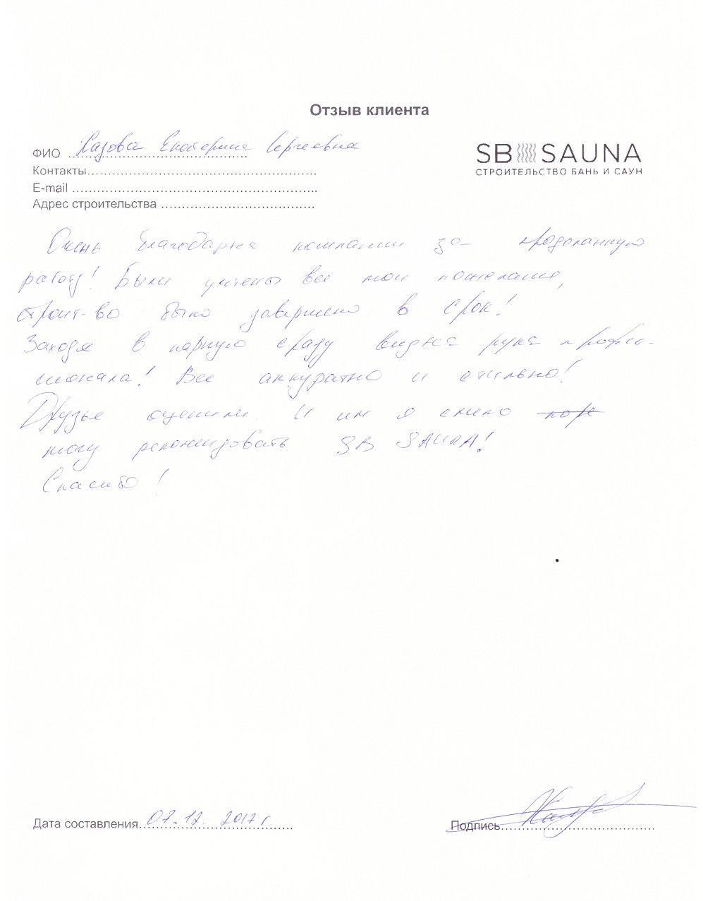 Отзыв наших клиентов