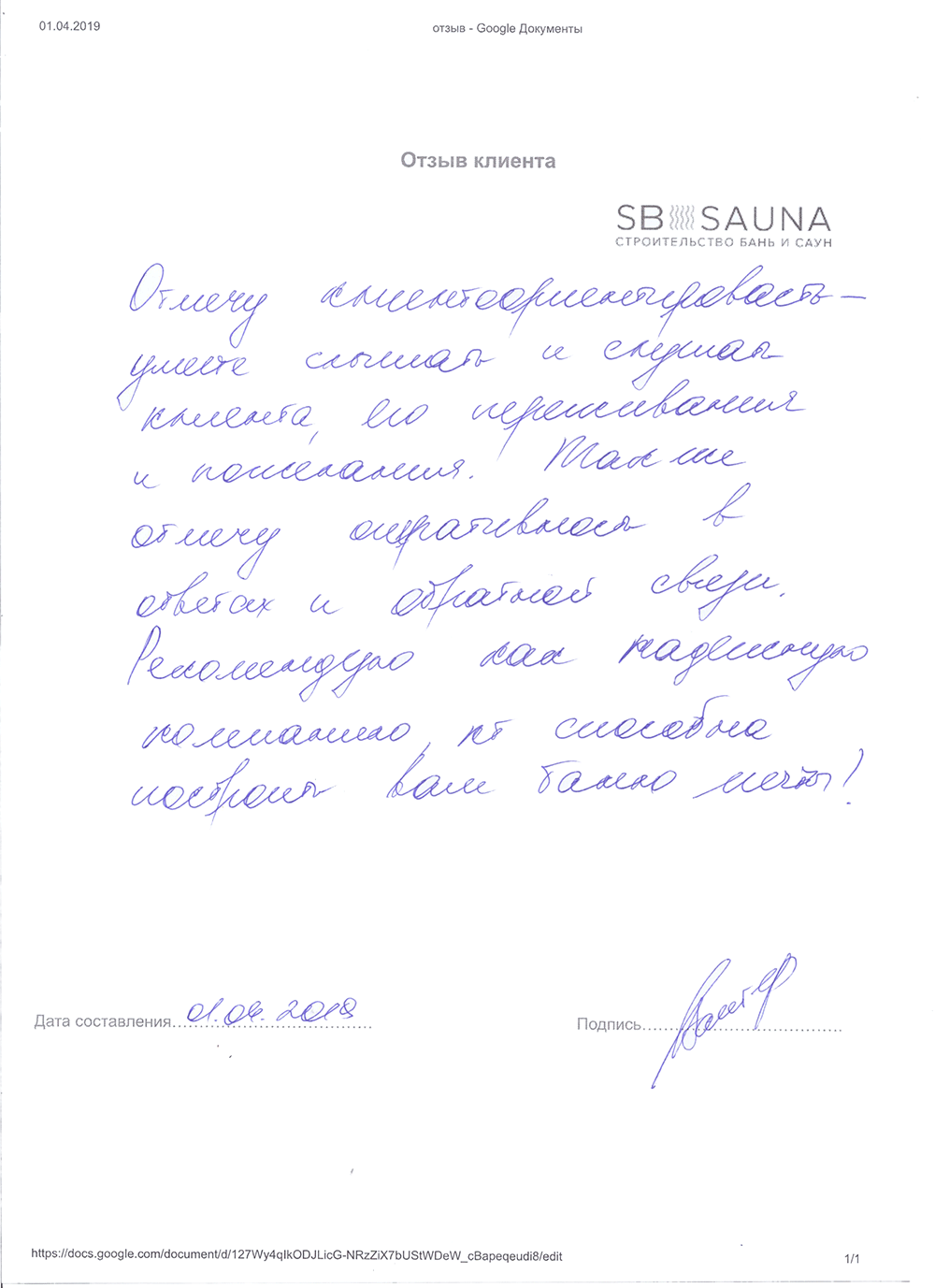 Отзыв наших клиентов